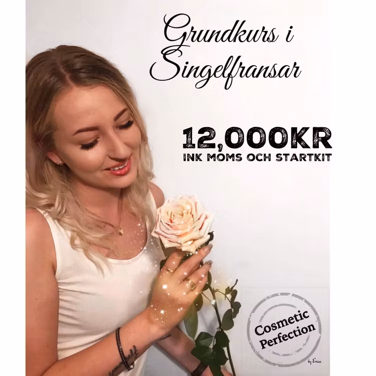 Singelfransar Grundkurs 0 kr 12 000 kr Detta är en grundkurs där vi lär oss att sätta singelfransar och flats. Kursen inkluderar teori, härdplastutbildning och övning på tre modeller. Stöd av lärare och elevgrupp under och efter avslutad kurs.Startkit ingår Flera populära produkter Kombinerad kurs i fransförlängning 17 900 kr Kurs i Bryn färg och form ink trådning 4 500 kr BB-Glow & Microneedling 12 900 kr Kurs i Eyeliner 15 000 kr Online kurs i Volymfransar 5 700 kr Brow Lift kurs -online 3 500 kr